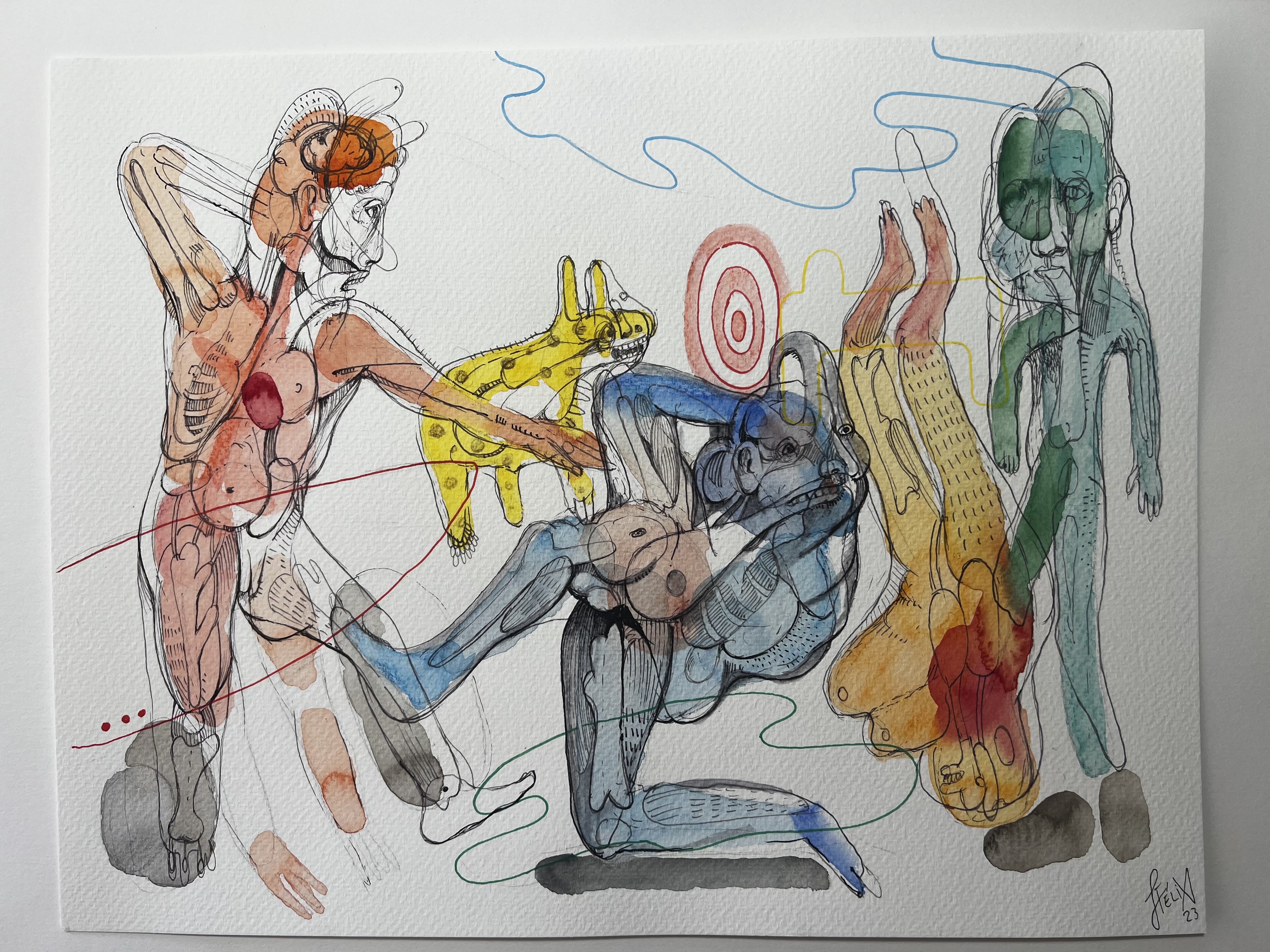 lápiz, tinta a pluma y acuarela sobre papel acuarela 250gr.